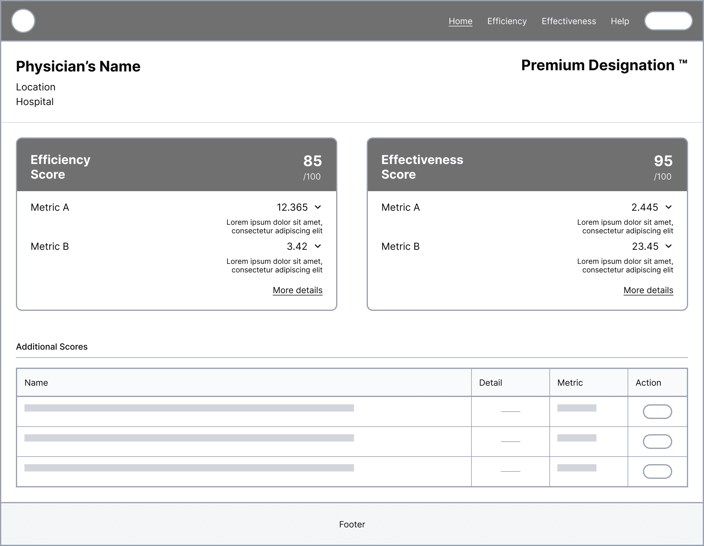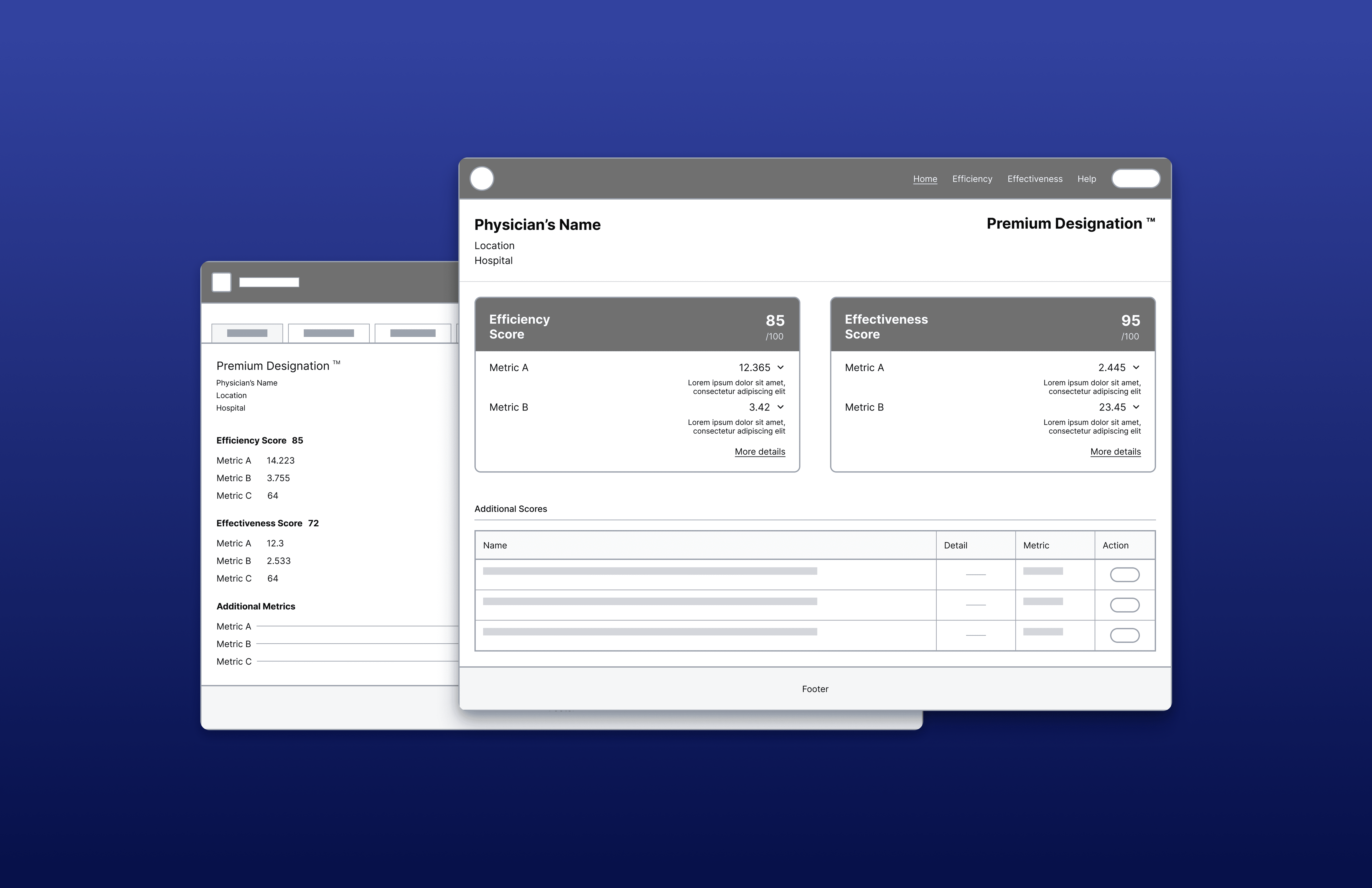 Internal teams showed complex statistical formulas believing physicians needed to understand why they received their scores—but physicians aren't statisticians. They wanted three things: their score, whether they achieved designation, and how to improve.