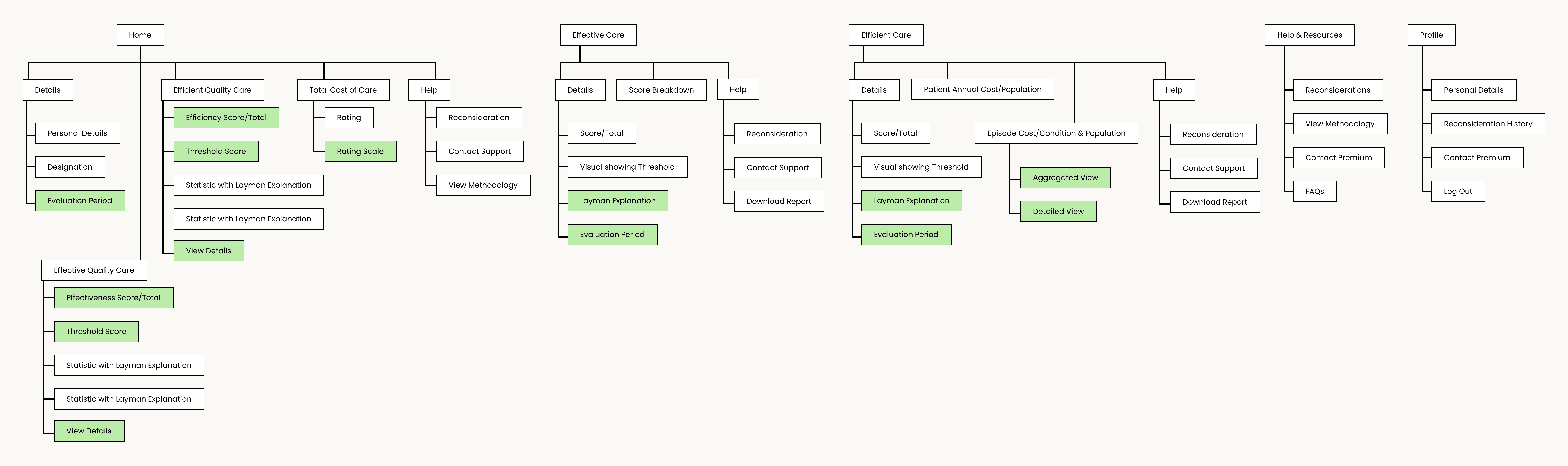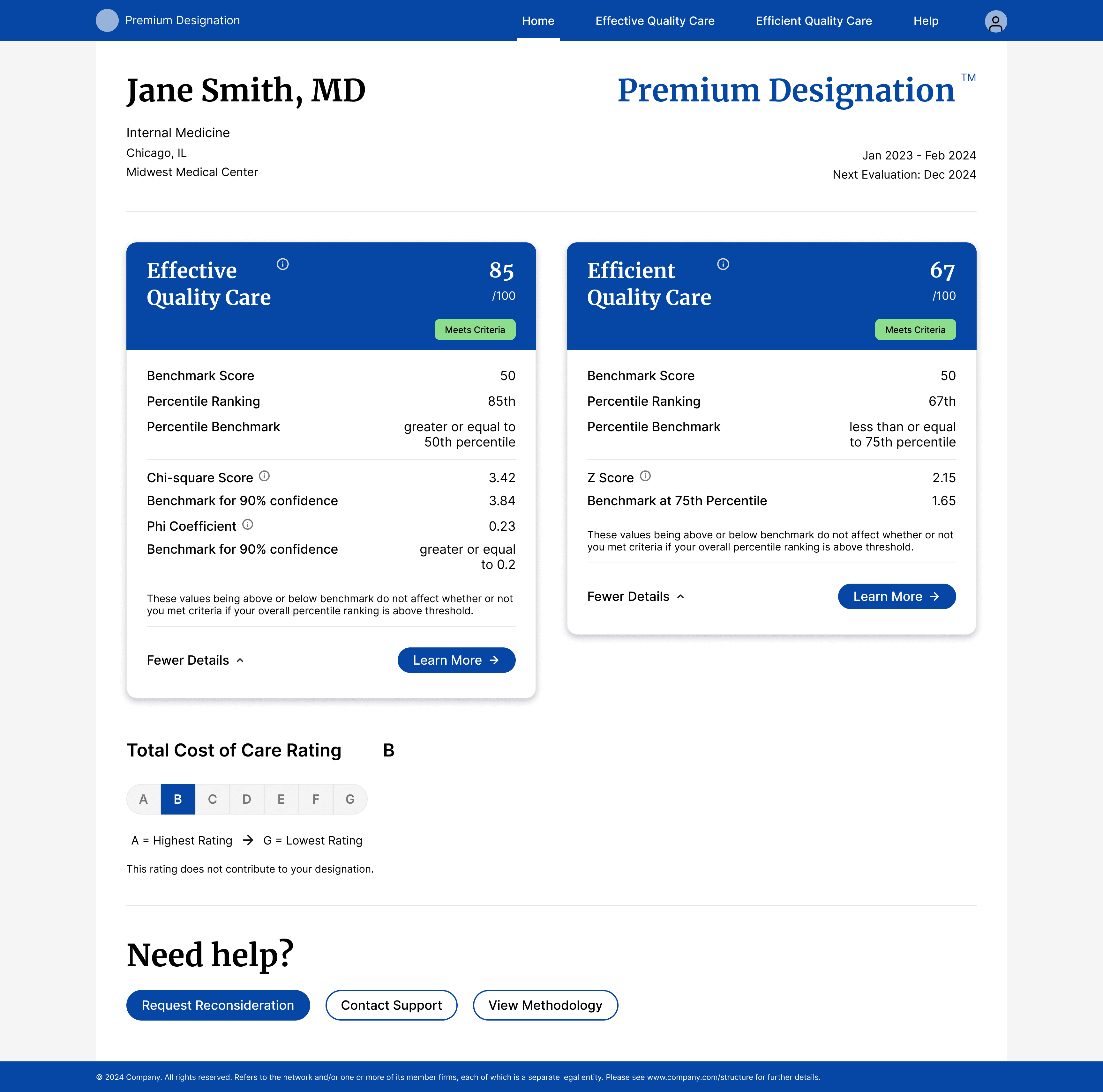 The problem wasn't that the information existed. Stakeholders had legitimate reasons for wanting it available. The problem was that it was presented with equal weight to the answers users actually needed, forcing physicians to wade through statistical jargon to find their designation status.