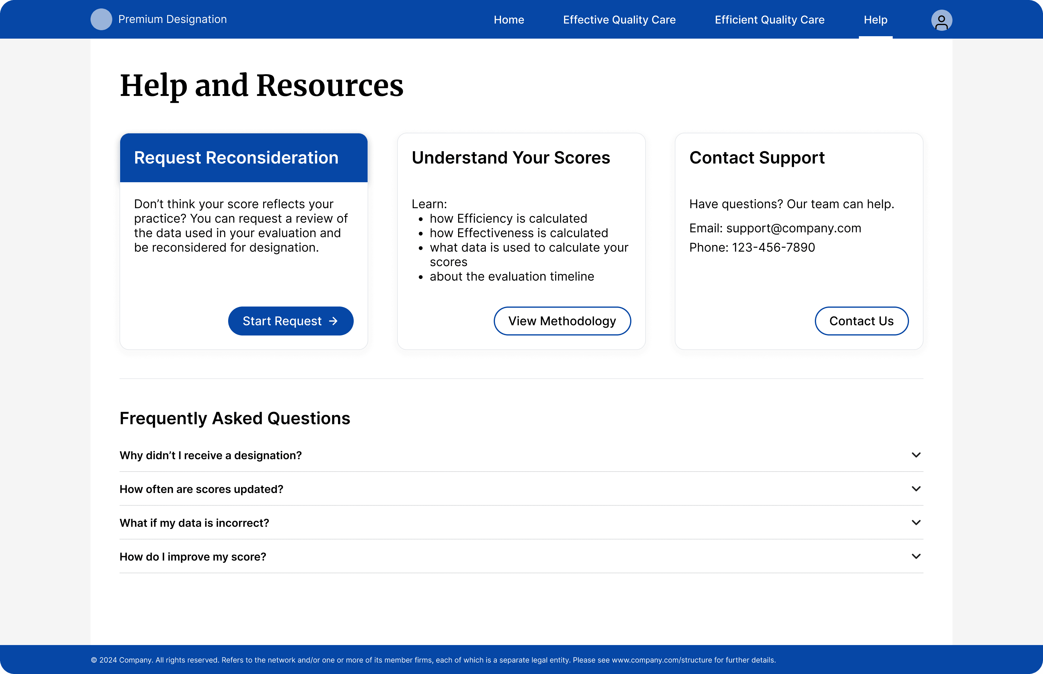 This is for the physicians who still want help understanding their scores. Available, but in a different tab and accessible from every page. Users can navigate to it if they want to go over the methodology and contact the Premium team.